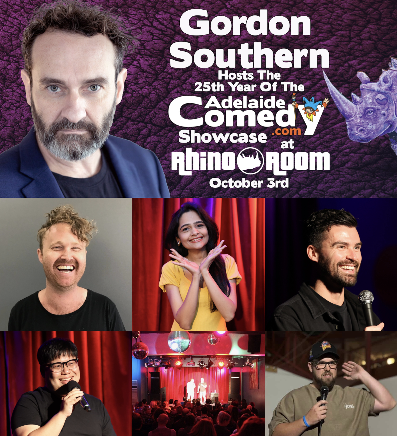 One of Adelaide Comedy’s fav old school hosts Gordon Southern returns to steer the 25th year of the Adelaide Comedy Showcase at Rhino Room this Friday Oct 3rd. Don’t miss Gordon showcasing a bunch of hilarious local comedians including Jay Michael, Brendan Goh, Hiral Desai, Stephen Lockwood and Thom Lion.