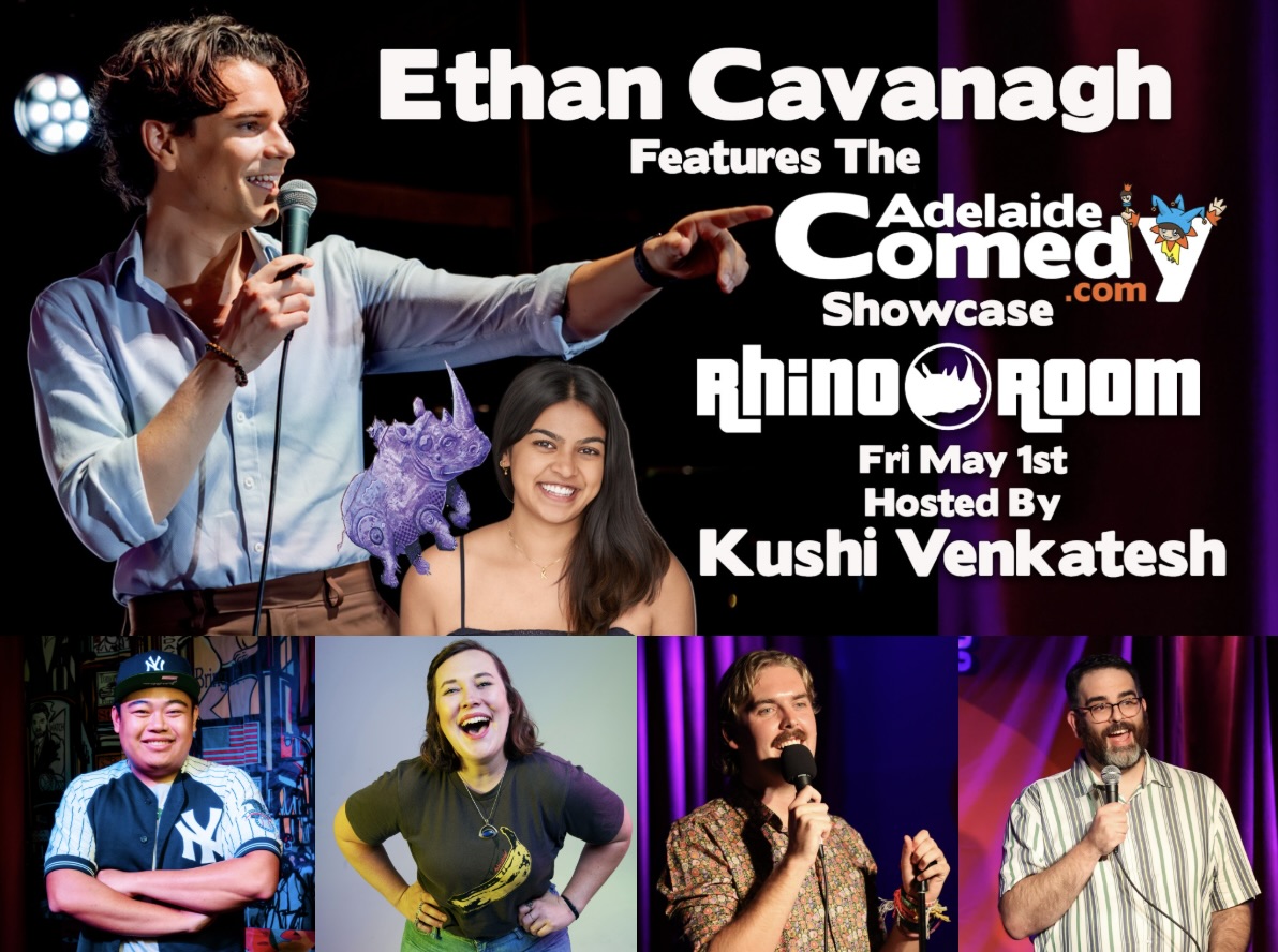 May 1st with host Kushi Venkatesh supported by New York comic David Jin and a selection of local funny crew to be announced soon. Subscribe at Adelaide Comedy.com to get your first 2 tickets free.