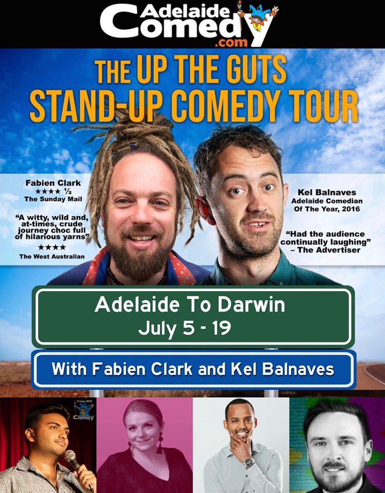 2 Comedians – 1 Car – 3000 km – 1 Comedy Adventure. Two of South Australia’s best comedians are taking on the famous Stuart Highway and driving all the way to the top end, stopping off to perform along the way.